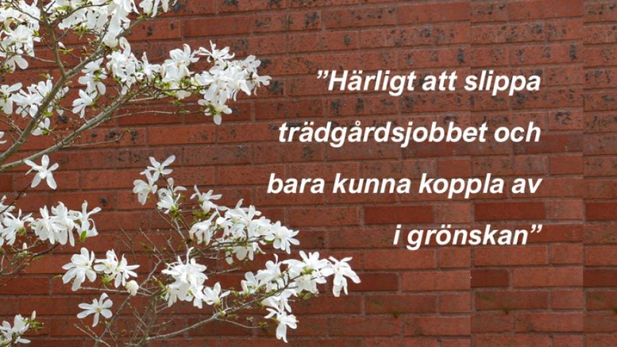 Trädgårdsintresserade medlemmar kan odla i gemensamma pallkragar. På sensommaren mognar svarta vinbär och krusbär, och i början på hösten kan äpplen och plommon plockas direkt från träden. Självklart delas skörden så att det räcker till alla som vill smaka.